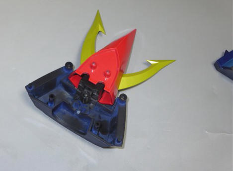 角をしぼむと赤い頭部が上昇出来、赤い頭部を下げると角が展開するのが分かると思います。