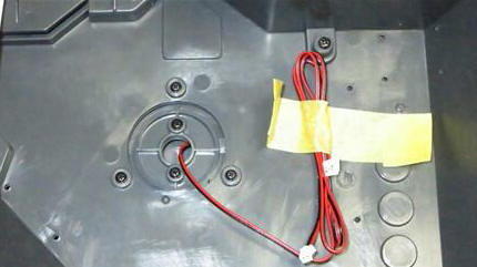 リフレクターから出ているケーブルをアームBの穴に通して、そばの溝にはめこんであげます。