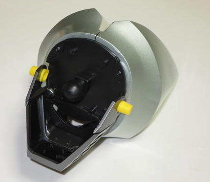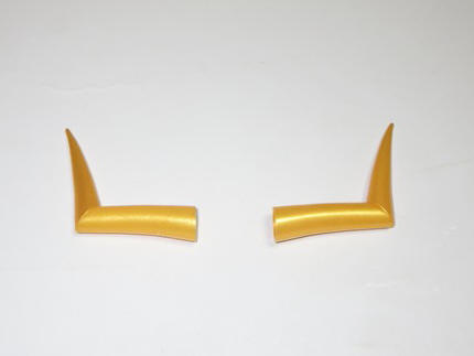 ランナーから切り離したサンダーブレーク基部(左右記号に注意)を顔部品の両側の穴にはめ合わせて、回転させてあげます。