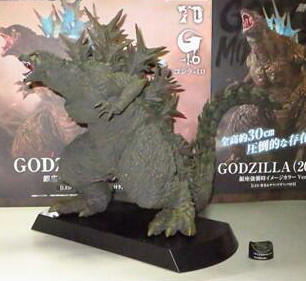 ゴジラの足はフィギュアそのものだから少し柔らかさもあるから、片足を少し納めてからもう片方を横に引きながら納めれば、収まる。