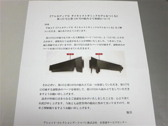 アシェット・コレクションズ・ジャパン株式会社より「週刊 海賊戦艦 アルカディア号 ダイキャストギミックモデルをつくる (キャプテンハーロック)」第114号~第117号が着弾しました。